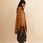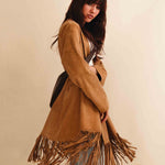 Unser Fringe Coat ADRIA ist aus feinstem Velours-Leder gefertigt und besticht durch seinen lässigen Oversize-Fit. Lange Fransen aus Leder verleihen der leichten Jacke eine besondere Dynamik – ein Statement-Piece mit eleganter Lässigkeit.