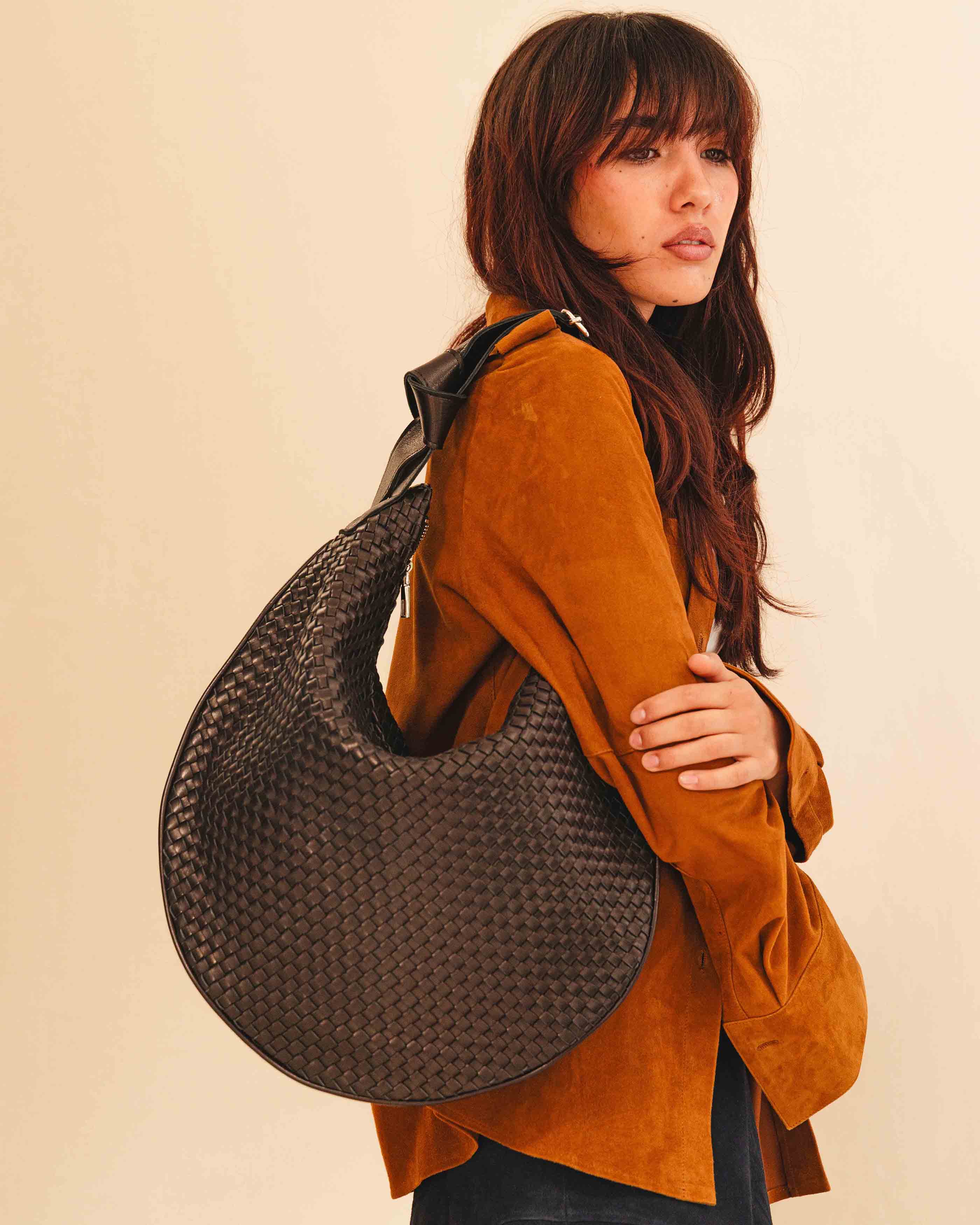 Kunstvoll aus feinstem Nappaleder von Hand geflochten, verbindet die Saddle Bag LUNA zeitloses Design mit stiller Eleganz. Ihre charakteristische Sattelform macht sie zu einem raffinierten Begleiter. Alltagstauglich und doch besonders.
